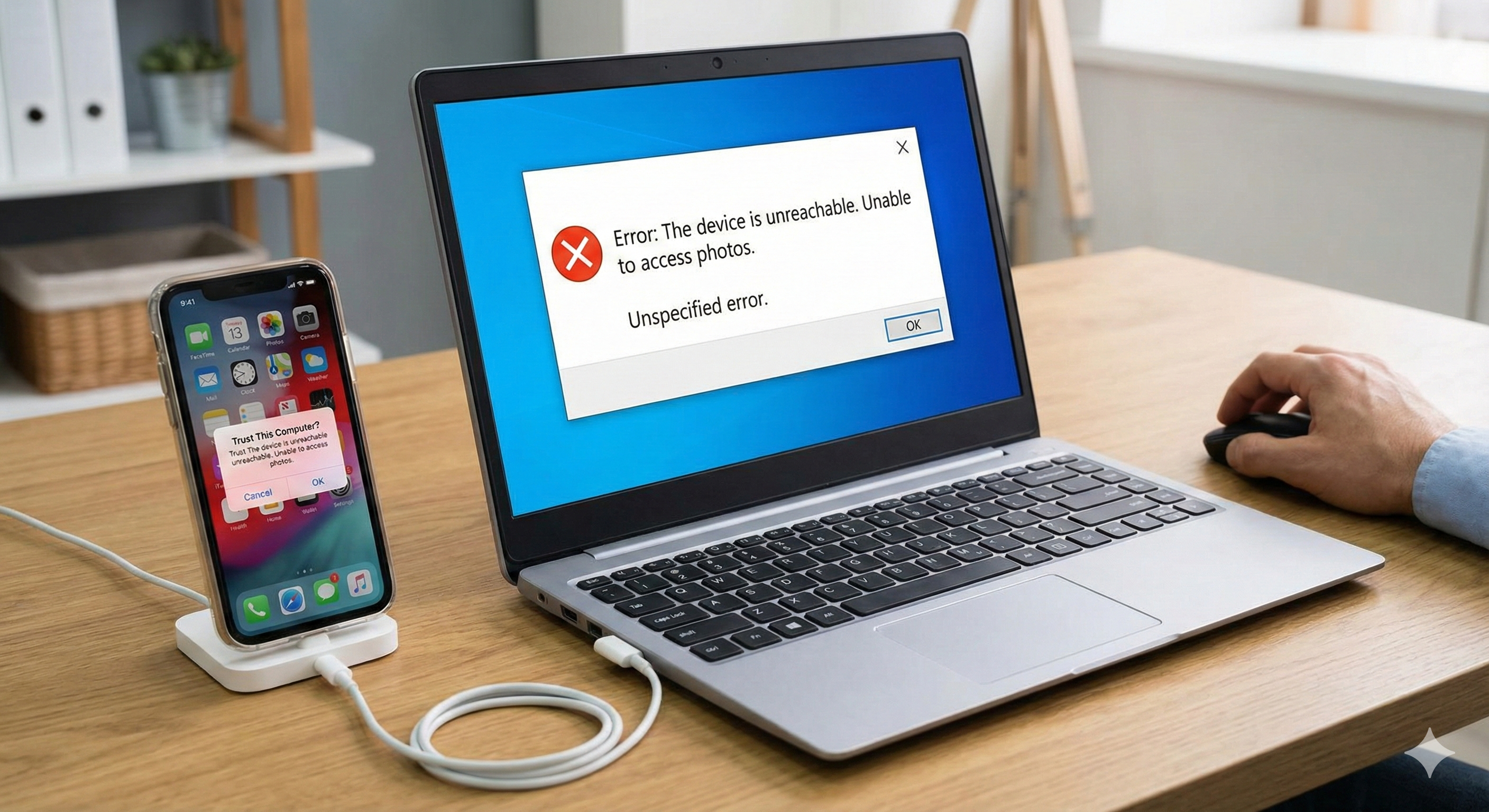 お客様:「iPhoneとパソコンをケーブルでつないでも、写真が全く取り込めなくなったんです…。」