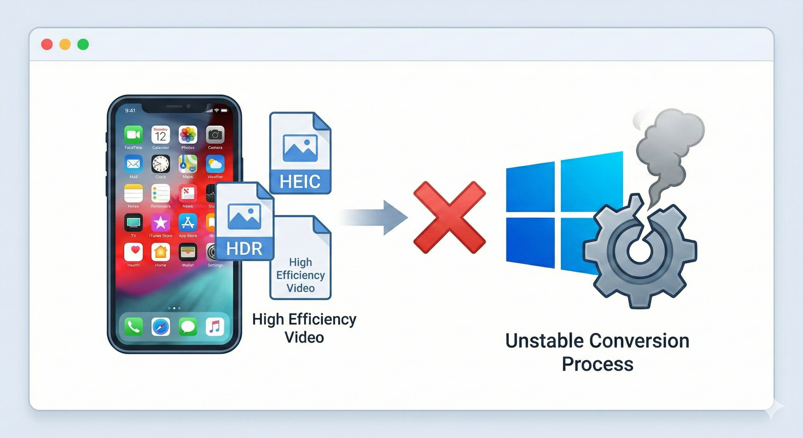 iPhone内の写真データ(HEIC/HDR/高効率動画など)をWindows側で変換できなくなる現象